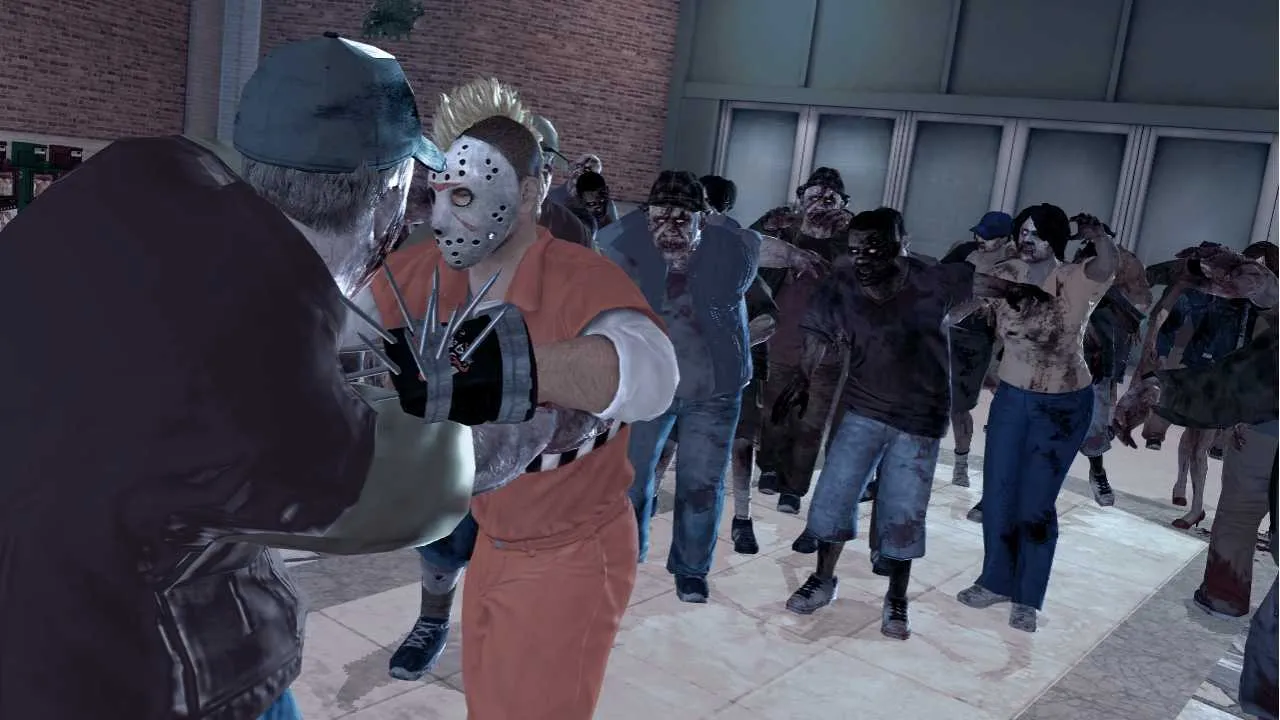 This latest batch of Dead Rising 2 screenshots from Gamescom in Germany may be the best I've seen yet. Everything is covered here: A zombie is pitched to a baseball bat-wielding Chuck in full uniform. An Elvis getup is donned complete with a dangerously loud guitar. A hockey-masked killer fillets a walking corpse with clawed boxing gloves. There are even hot pants. Hot pants! This slew of screens has it all.