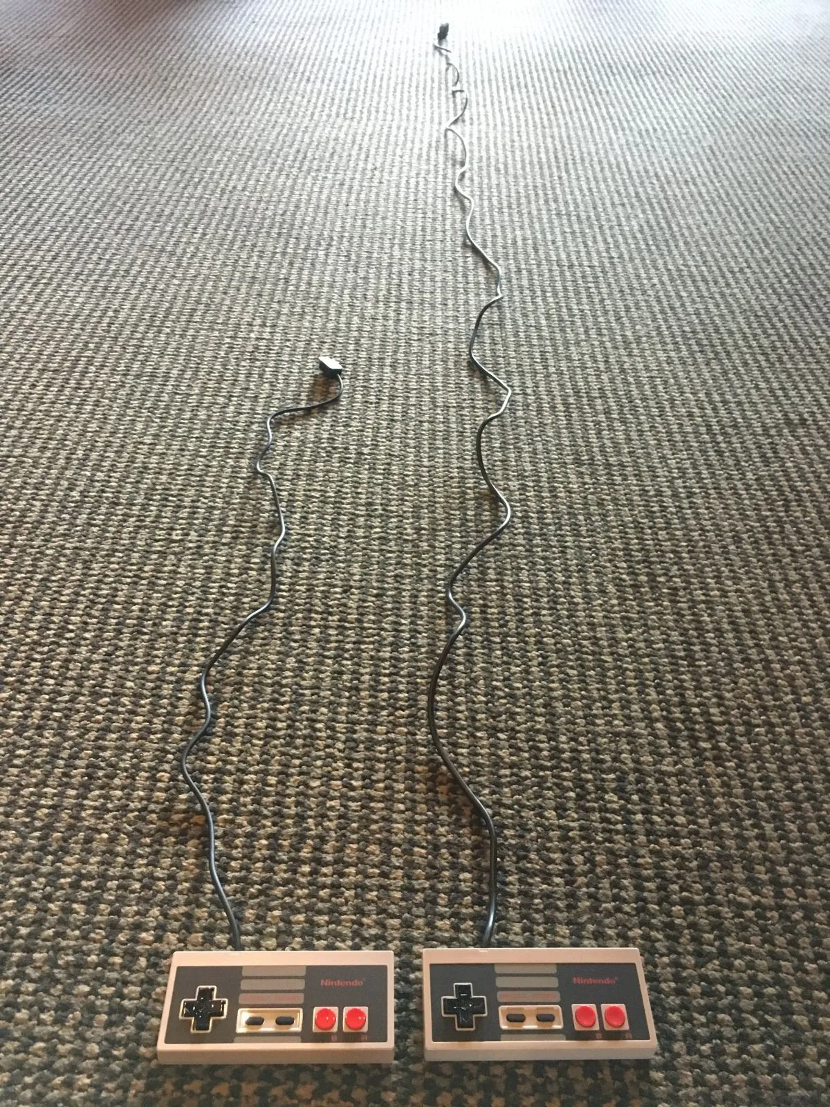 This is the cable length compared to an original NES controller. When we asked representatives from Nintendo about the short controller length back in September, they said they expected players would use the slack from the HDMI cable to make up the distance.