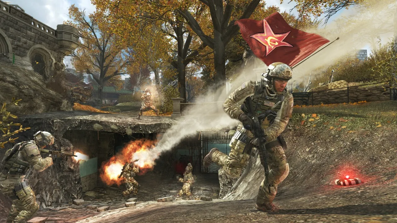 Liberation - a militarized Central Park in the heart of NYC, featuring a vast landscape ripe for long-range sniper and LMG kills. Mounted turrets on opposing ends of the map offer overwhelming firepower to anyone brave enough to man them.