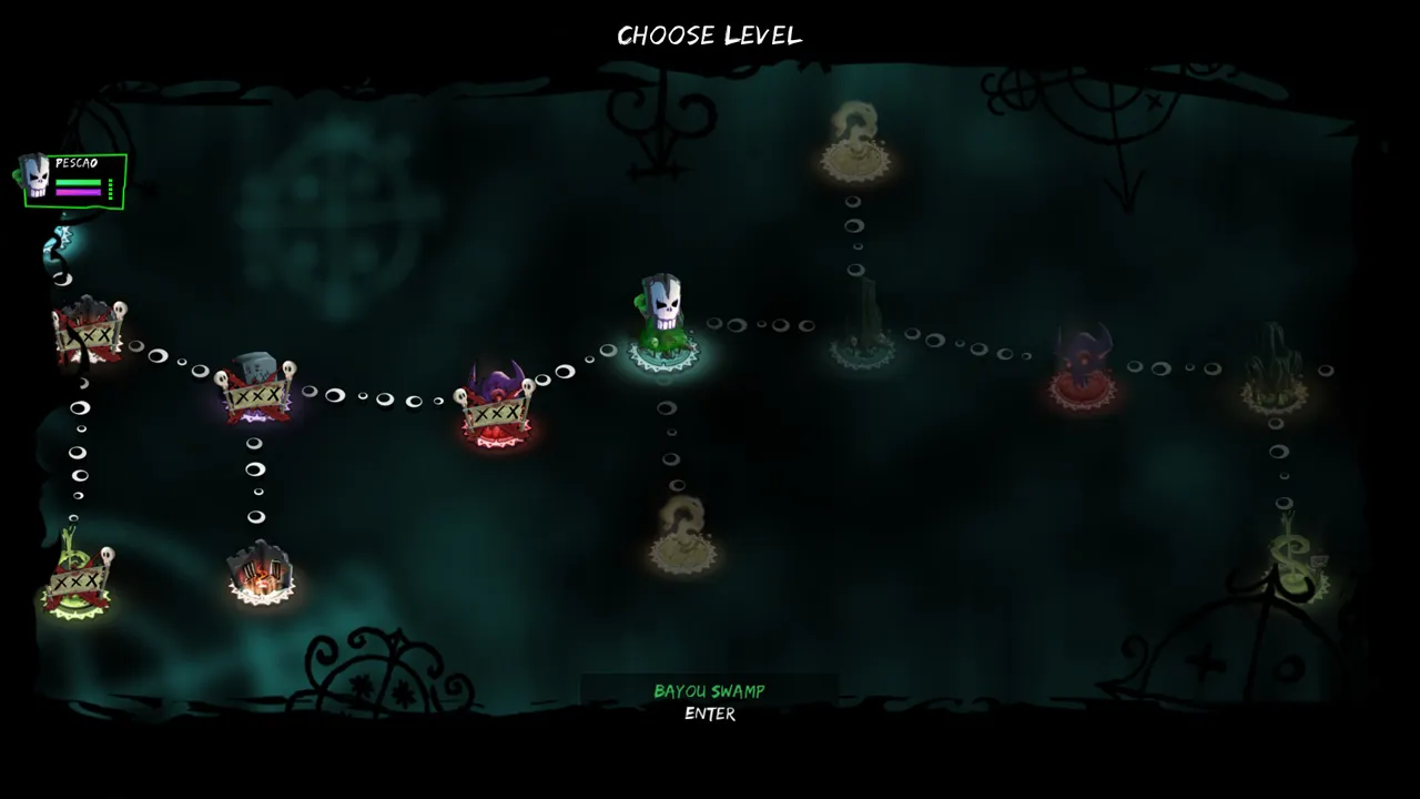 The core of the game will have four players cooperatively rollicking through randomly generated levels using magic-imbued items called mojos, gifted to players by the voodoo gods. Gold and experience carry over after you die, so each playthrough doesn’t feel crushingly meaningless.