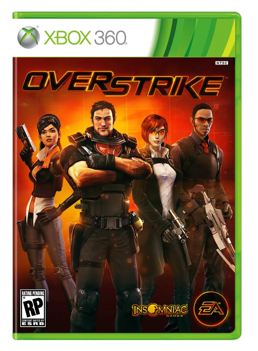 Overstrike is set in a near-future setting where four unique player characters work together cooperatively to destroy enemy strongholds. According to Insomniac, the team members include: "an ex-mercenary, Interpol’s most wanted thief, a gifted young scientist and a decorated detective."