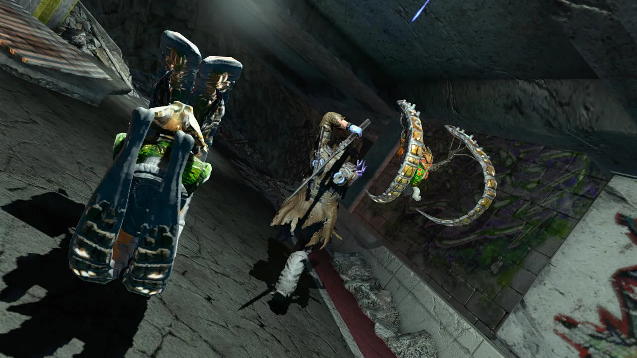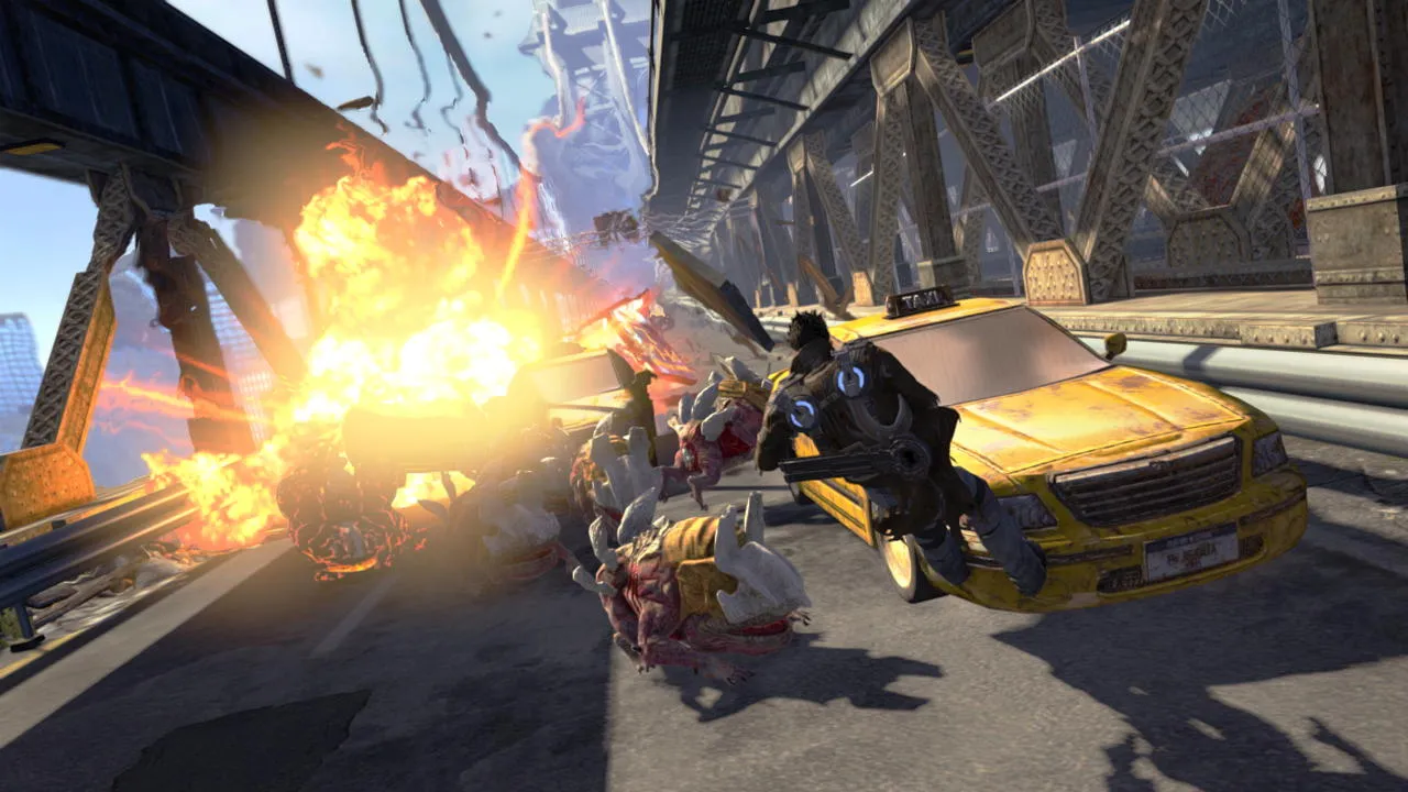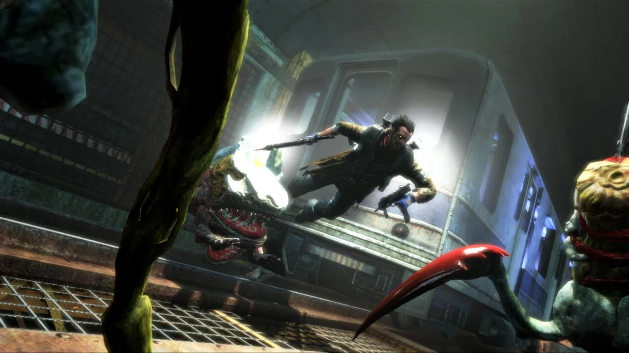 For those of you who haven't seen this game yet, NeverDead is the brainchild of Metal Gear Solid vet Shinta Nojiri and Rebellion Studios (Rogue Warrior, Aliens vs. Predator). To recap, this crazy plot stars an immortal with a dated fashion sensibility who works for the National Counter Demon Agency (my favorite government bureaucracy by far). His speciality? Using his dismembered limbs offensively and defensively to turn the tide of combat.