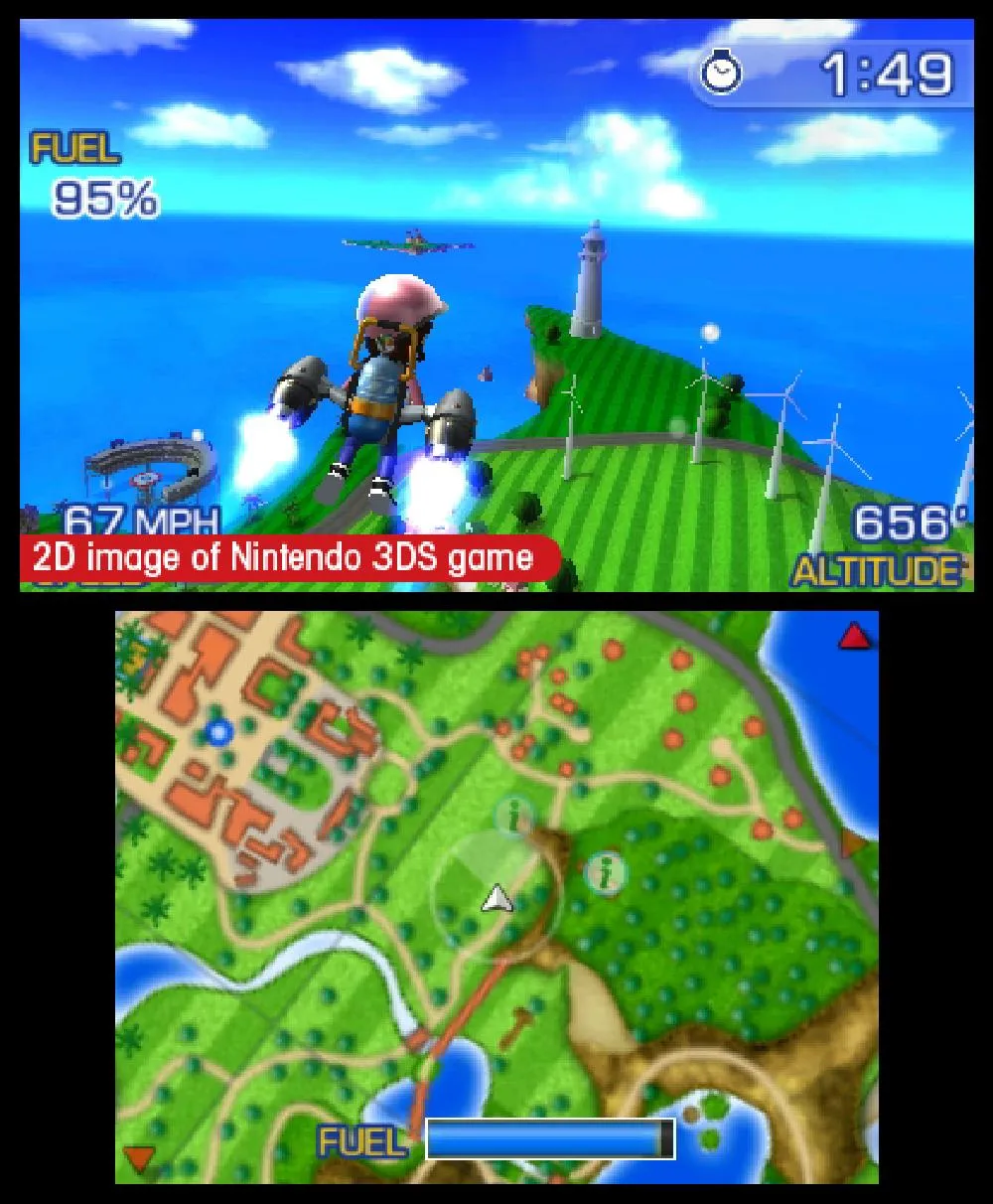 If you’ve played either of the previous Pilotwings games, you’ve probably got a pretty good idea of what to expect from Pilotwings Resort. It continues the series’ simple formula of flying around in various aircrafts while showing off the 3DS’ improved graphical capabilities as well as the 3D functionality itself. Sadly, though, Pilotwings Resort is held back from any lasting impact because of a handful of shortsighted design choices.