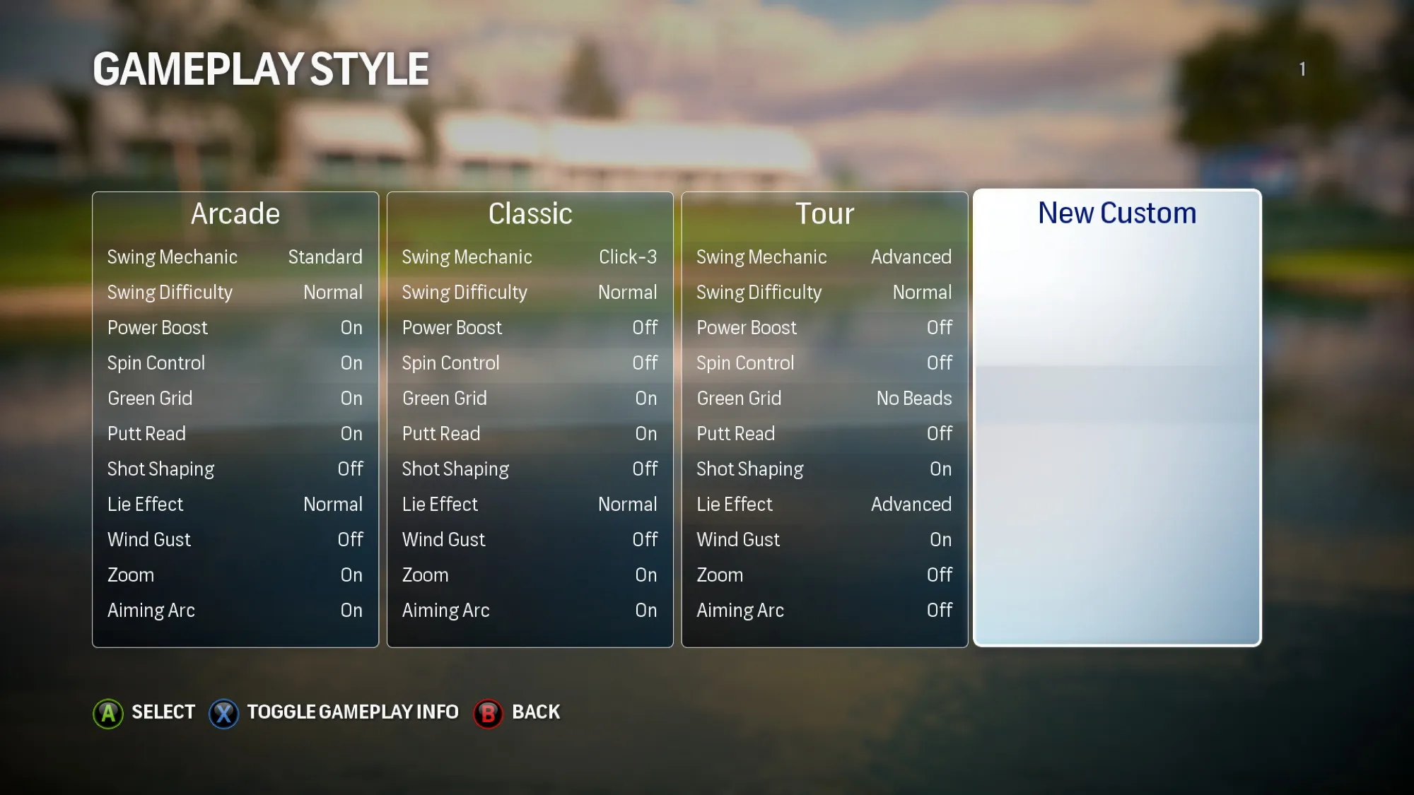This isn't anything new, but where this title gets fun is that it lets you create a custom style by toggling and mixing what kinds of gameplay mechanics you prefer. So, if you like to be able to apply mid-air spin or see the ball line for where it might go after you put some draw on it, but don't need to see the putting grid, then you can tailor the experience to your style of play.
