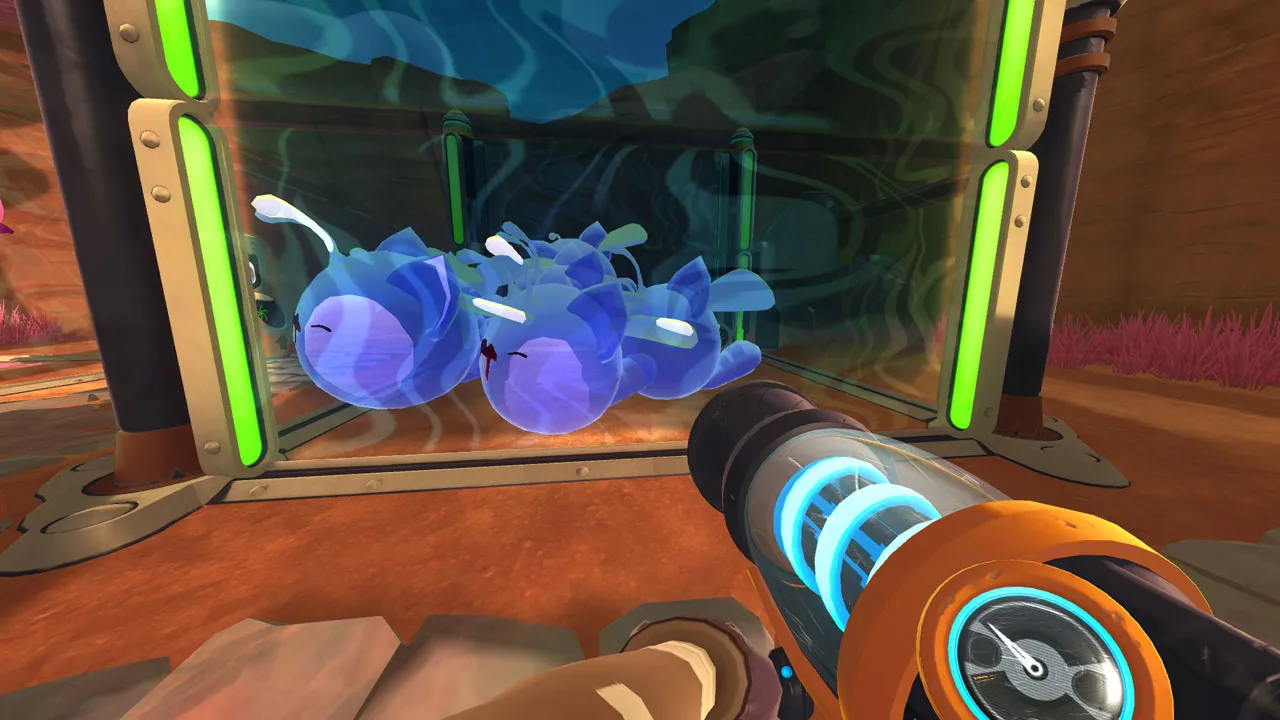 My time on the range periodically reminded me of many other gaming experiences I’ve enjoyed over the years. The low-stress farming element feels like Viva Piñata, the routine scratches the same itch as Stardew Valley, and exploring the unknown has a Minecraft vibe. Slime Rancher captures the essence of what makes those things fun, but it’s more than an assemblage of familiar parts. Everything comes to together in a carefully crafted whole with surprising depth that provides incentives to collect every slime and buy every upgrade (not to mention lots of resource-intensive, late-game rewards for the especially dedicated). Slime Rancher has the ability to keep you hooked for hours; I often looked out over my ranch, felt pride at my accomplishments, and eagerly ventured back into the wilderness to see what other strange things I could find.