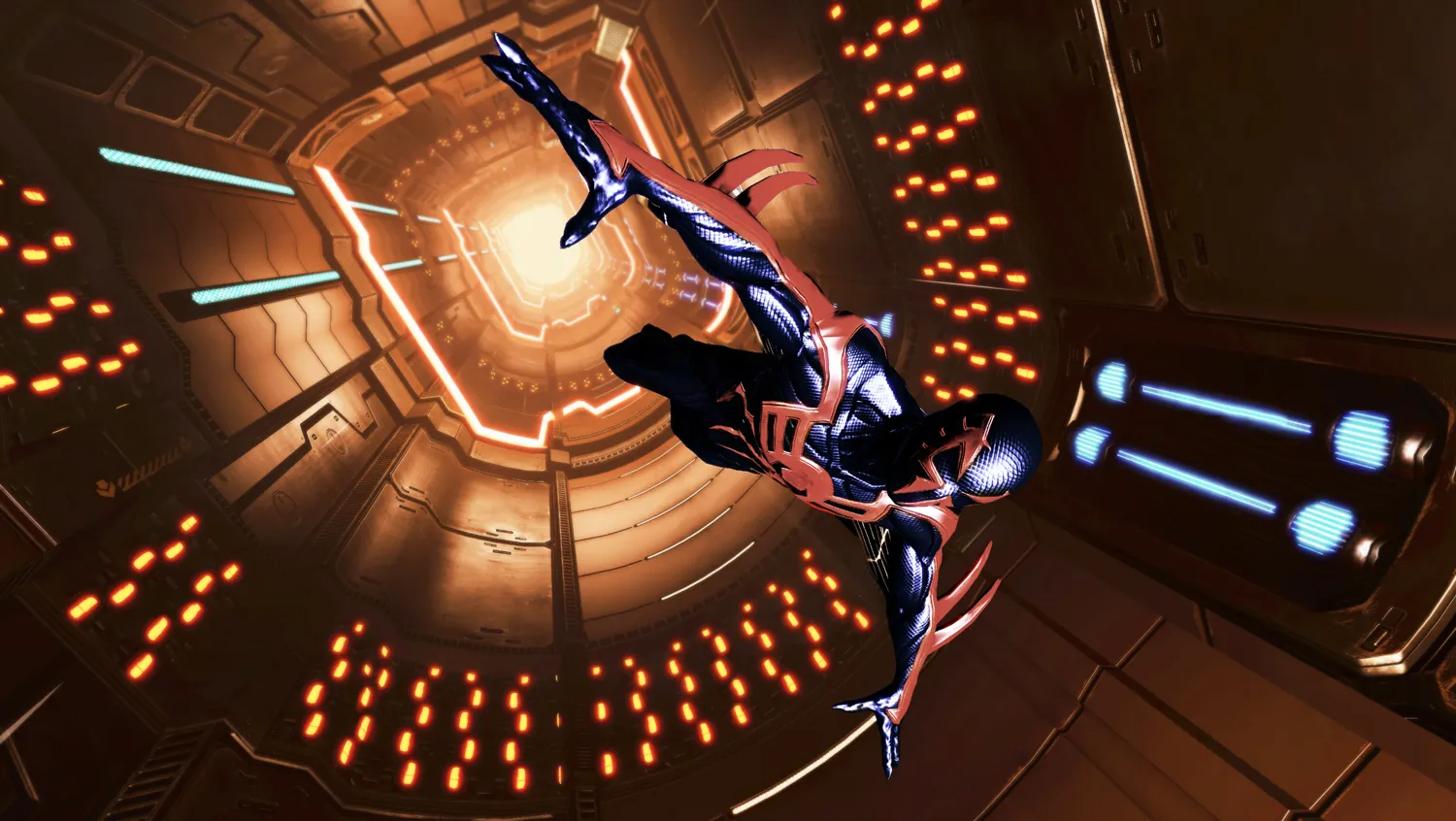 “Peter ultimately knows that he’s walking into danger, but other people are in danger as well, so he has to be the hero and go save them,” says associate producer Kevin Umbricht. “While he is making his way up to the 66th floor, in the future, Miguel O’Hara is working his way down the Alchemax building to get to his own 66th floor.” According to Beenox, some big revelations await players once they get there. That won’t be the end of the game, but it’s a major turning point for the story.