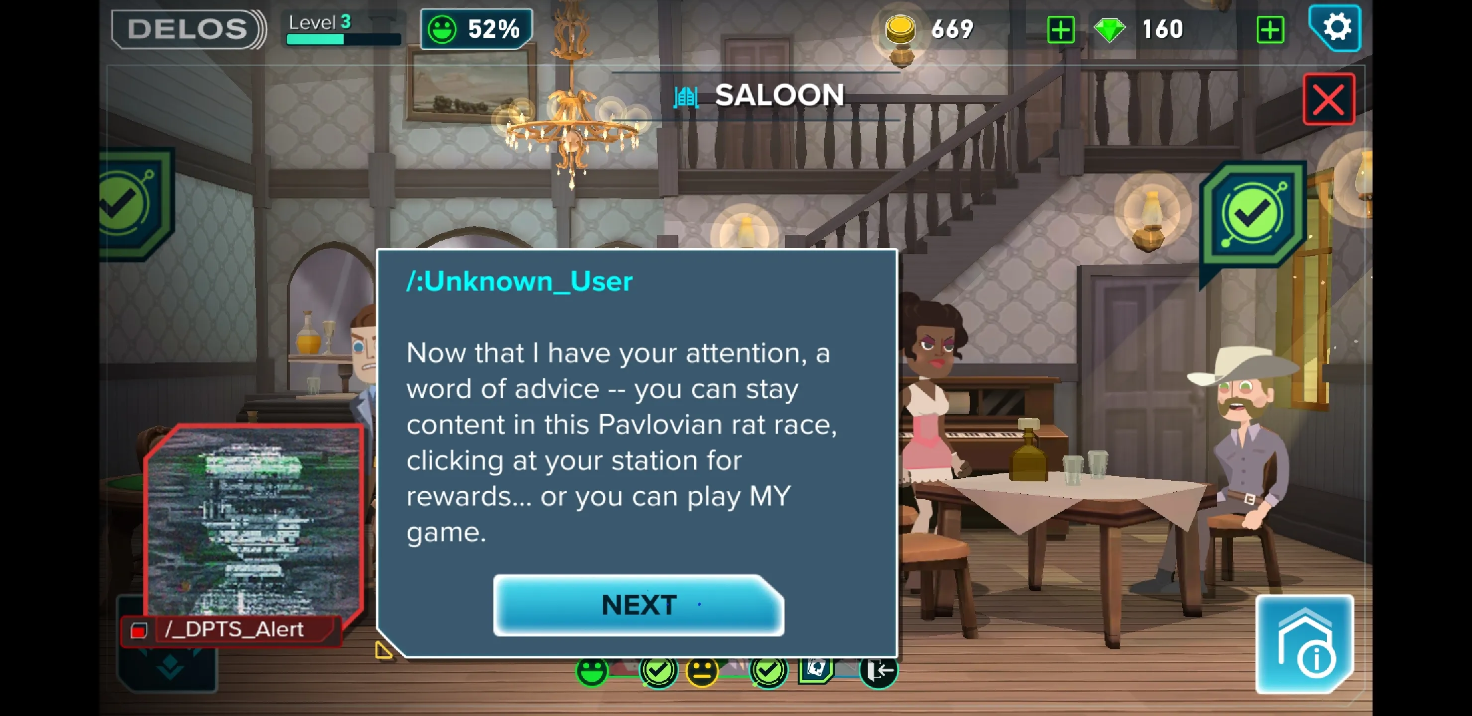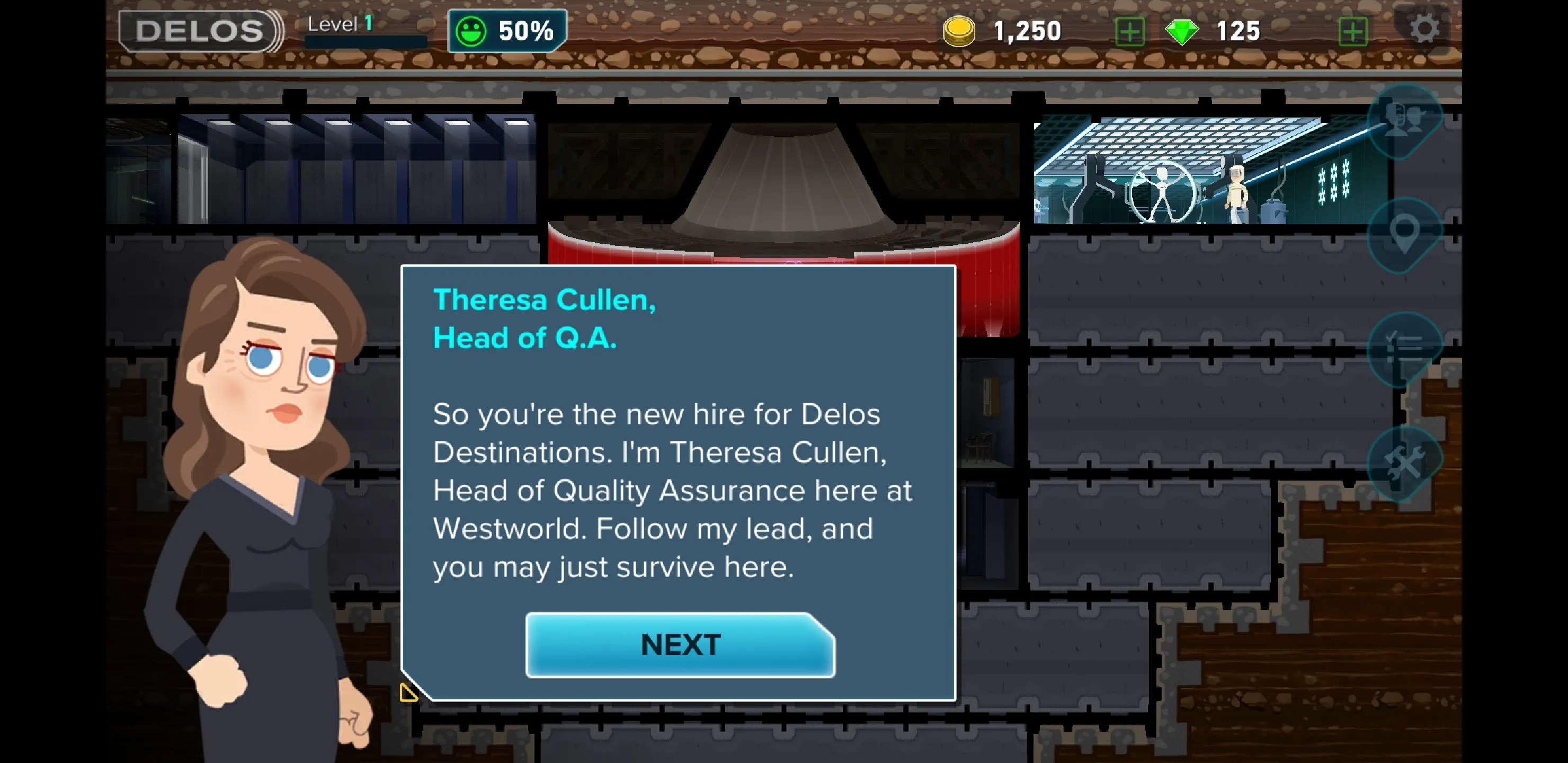I’ve run into a couple of major problems in the hours I’ve spent playing the game. First, you don’t do a whole lot of “playing.” You’re inundated with a lot of different interactions at first, but once you establish a rhythm it’s clear how shallow most of them are. Most notably, the expansion element, in which you build out different sections of the Westworld park, as well as the underground Delos complex that’s the nerve center of it all, is oddly linear. Unlike Fallout Shelter, which gave players a variety of different options for how to run their vault, there aren’t many things to build here. I never had to make any difficult choices or was given a chance to optimize my base. It doesn’t matter where you plop buildings down.