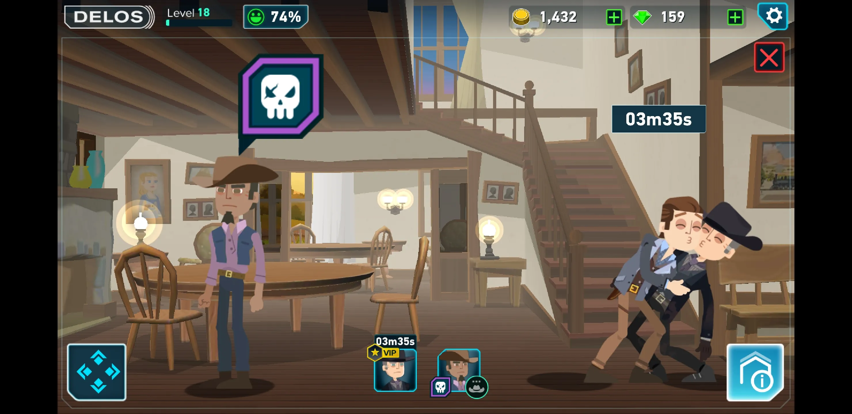 There’s something kind of silly the first time you see the cartoony characters playing cards or sneaking into the back room of the saloon for a little hanky-panky, but these interactions have the charm and variability of setting an alarm clock – or a series of them. Once the interactions are done, it’s a matter of quickly cycling through the rewards, sending the dead ones to get repaired, and continuing the grind.