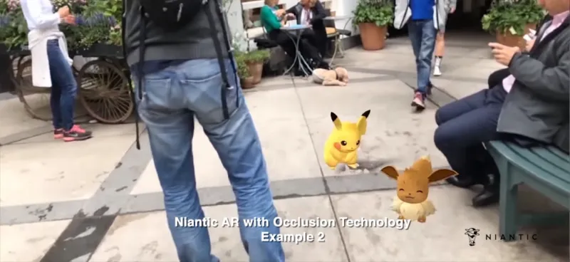 The demo, dubbed Codename: Niantic Occlusion, shows off new tech that allows their AR images to disappear behind objects. Currently, using Pokémon Go as an example, if you are catching a Pikachu on a bus, it just stands there regardless of what you're looking at. If someone is standing behind Pikachu, but then walks toward the camera, Pikachu stays floating in front. Niantic Occlusion seems to remedy that by showing Pikachu ducking behind things and people in the camera's view.