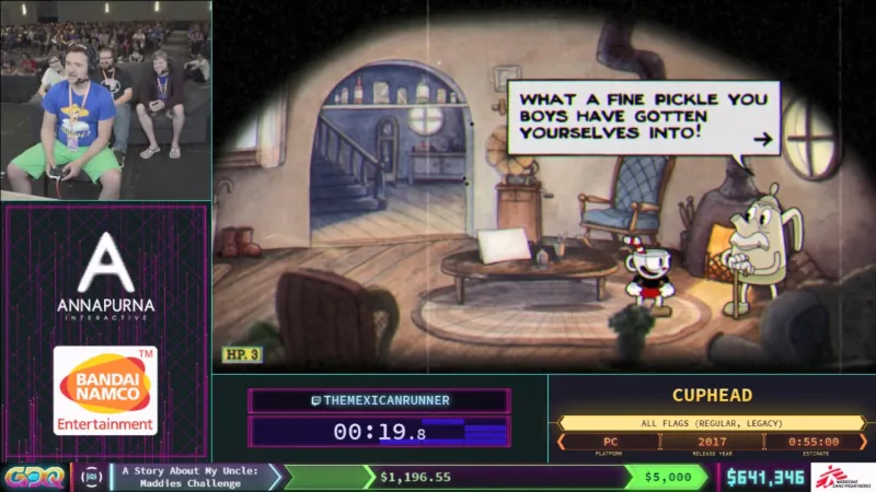 The first run you want to check out is Cuphead, which you can watch via Twitch VOD here. TheMexicanRunner basically dismantles the game in a way that, even if you found the game pretty easy, makes it look like child's play. For a game that isn't particularly old, TMR has seemingly mastered it.