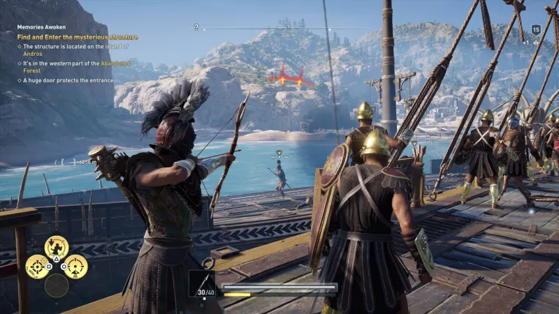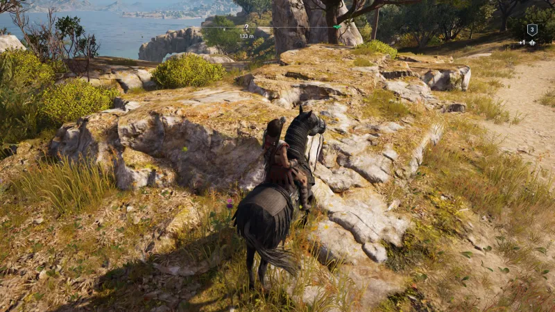 You can take on a ton of different missions in Odyssey, from the campaign to errands for NPCs and jobs from the various mercenary boards. You can only track one mission at a time, but a subtle icon will pop up when you’re near another mission objective marker. In other words, the NPC associated with Fetch Quest B will be highlighted when they’re close even if you’re focusing on Fetch Quest A. It saves a lot of time if you run into a mission-critical person or objective, even if you’re working on something completely unrelated – it certainly beats backtracking. Additionally, you can even complete quests without accepting them; if you unwittingly kill a special target or find a key item, you’ll get a notification on where you can turn in your surprise mission for the reward.