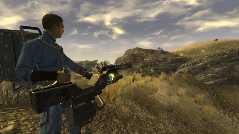 If you selected the wild wasteland trait, this weapon is only discoverable through a unique interaction with your cyber-dog, Rex. Walking around the wasteland, Rex will engage you in dialogue with “aroo!” Then, if you ask him if someone fell down a well, Rex will bark in agreement, and the location of the weapon will be marked on your map. Apart from the hilarious interaction with your canine companion, this weapon is a typical BB gun – that is, unless you land a critical hit, then it becomes a devastating weapon capable of taking down even the most formidable wastelander.