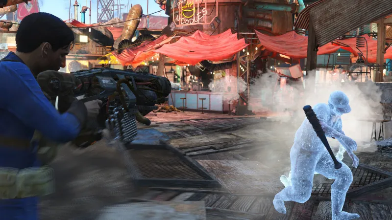 As silly as it is intimidating, the broadsider is nothing to shake a hook at. A portable 18th-century naval cannon that players wield like a minigun, it shoots cannonballs made from solid, black iron and turns raiders into chum in a flash. A reward for aiding pirate robots who speak with serious salty dog accents, vault-dwellers can finally feel like Captain Ahab as they take down their white whale of a super mutant.