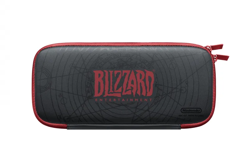 The Diablo III Switch bundle includes a download code for Diablo III: Reaper of Souls, a Diablo-themed carrying case with the Blizzard logo on one side, a Switch itself with Diablo art on the back, grey joycons, and Diablo art on the Switch dock. Check out pictures of everything below.