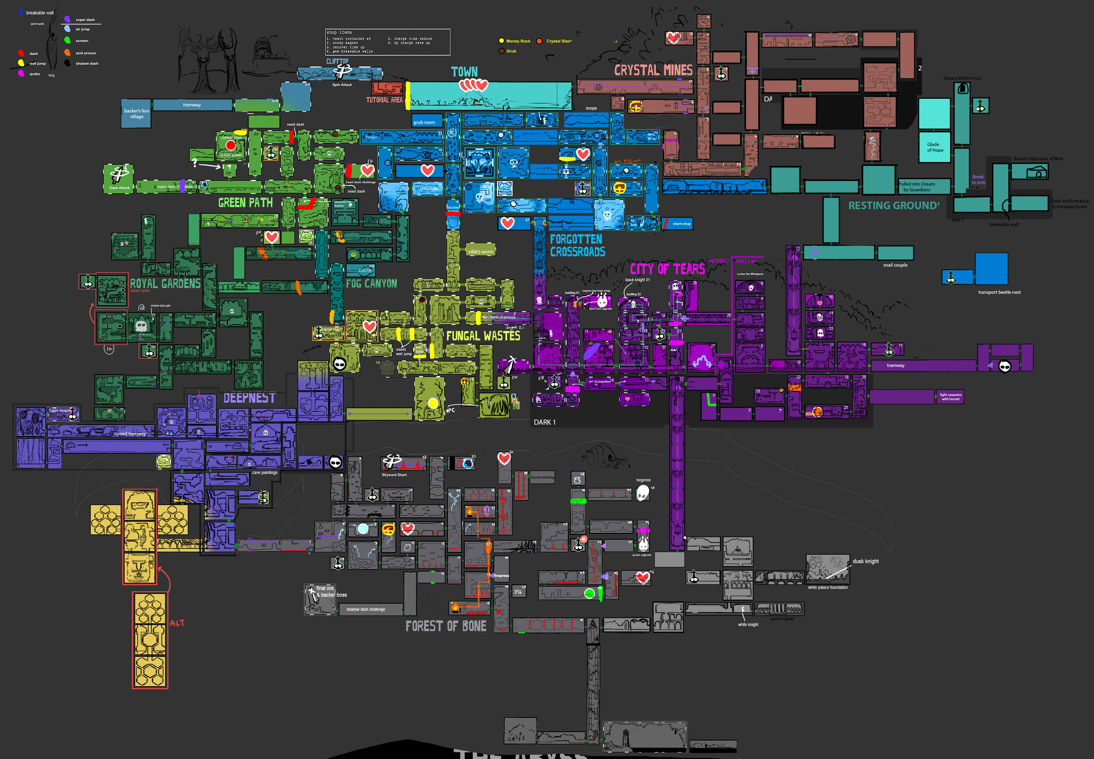 The Knight now needed a compelling world to venture into. The secret to any great Metroidvania is how well its map interconnects and loops back on itself, opening up previously inaccessible areas as abilities are obtained, giving players a true sense of discovery – all while subtly planting narrative seeds throughout.