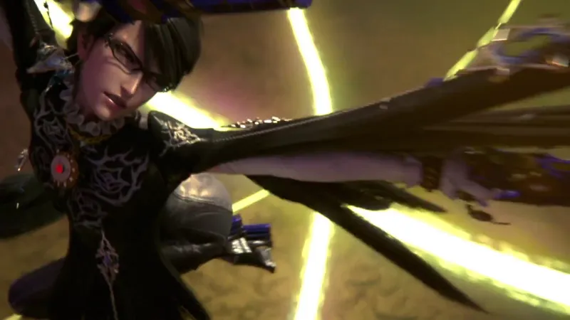 In the Bayonetta games, dodges are extremely useful and powerful. You can basically avoid ever being hit in the game if you master dodge. To increase the window a little bit, the games have a purchasable skill called Bat Within, which lets you miss your dodge window slightly and negate the damage of getting hit by transforming into a swarm of bats. To balance this out, if you spam dodge without a little cooldown, she can't dodge again for about one second. Here, Bayonetta backflips out of the way, gets grazed and uses Bat Within, then air-dodges coming out of Bat Within. She's run out of dodges and, judging by the resigned look on her face, knows she's through when she gets hit by the light.
