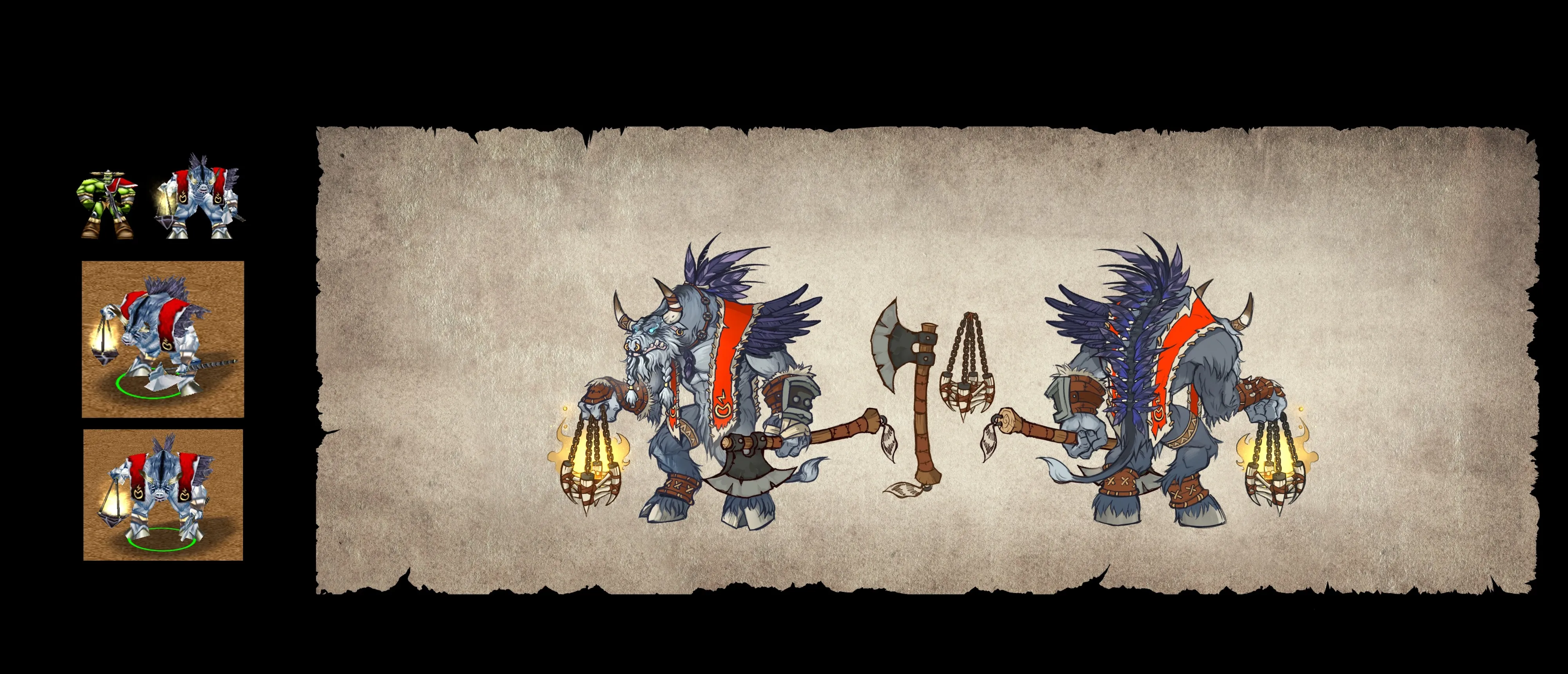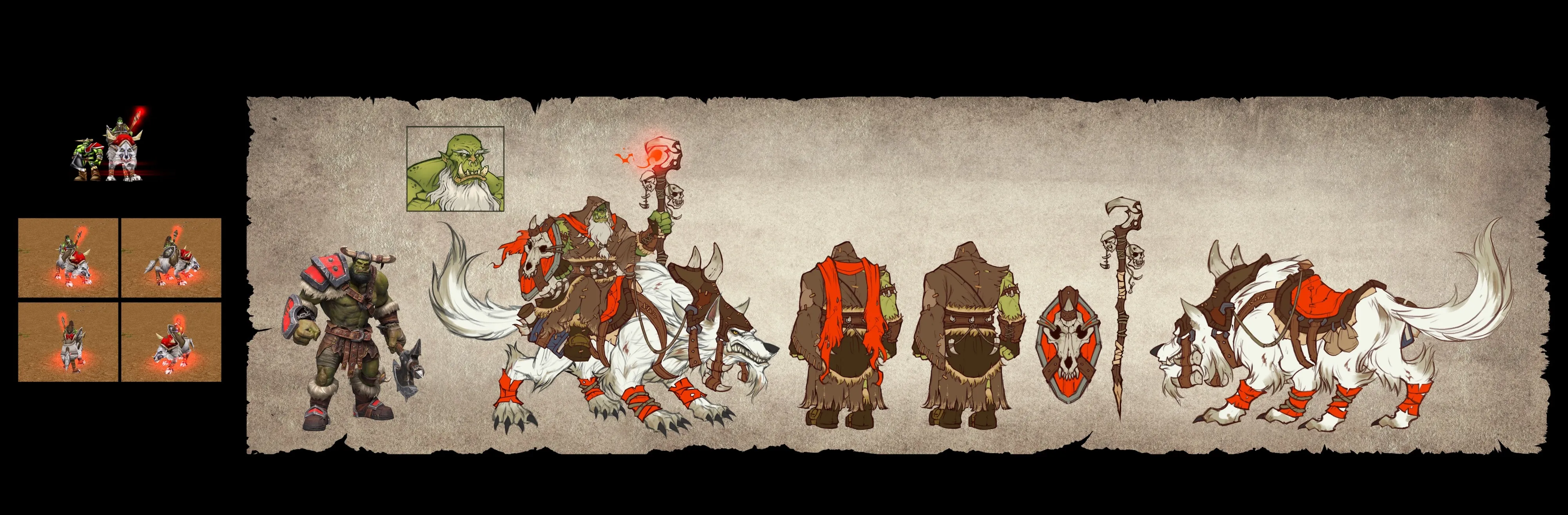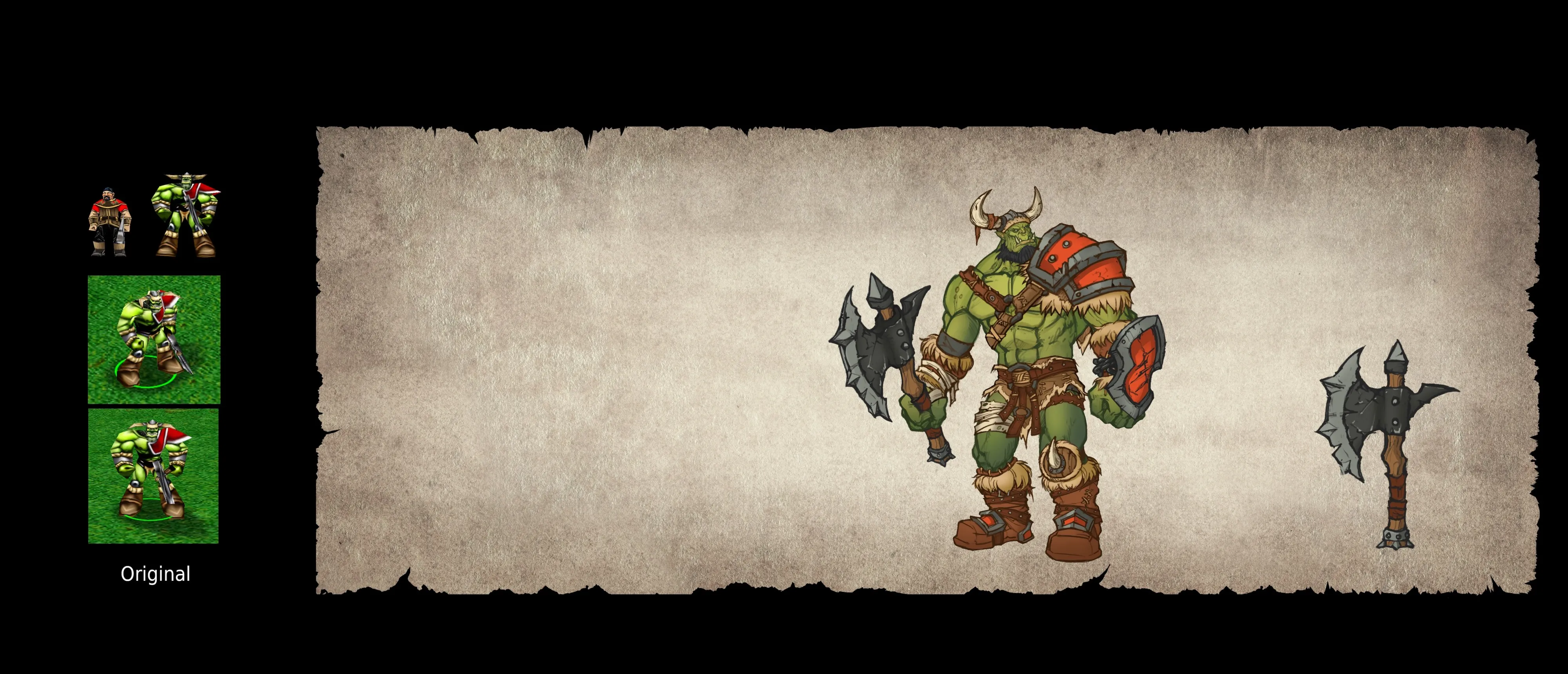 Since a lot of the Warcraft III images are so old and small, Blizzard referenced a lot of World of Warcraft assets, because WOW does a better job representing the modern look. At the same time, Blizzard spent months iterating on the Orcs and trying to get them right. There were multiple versions where Blizzard messed with their proportions, because a model that worked in third person for WOW will look different in a top-down RTS.