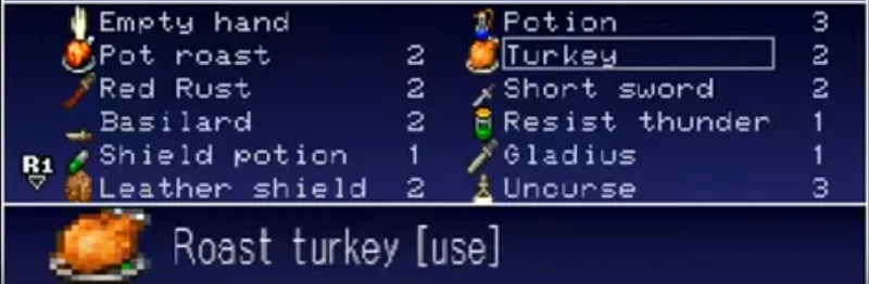 If it’s the old classics you’re craving, look no further than the turkey in the Castlevania series. You get the sense that someone in the castle is big into munchies, to the point where they have tucked away foods in the walls. Turkey provides a copious amount of health, bested only by steak.