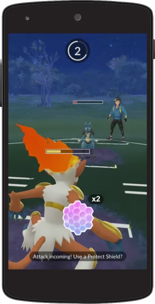 Each trainer only brings in three Pokémon this time to keep battles moving faster in PvP. At that point, you tap like mad to get your Pokémon to charge up their special moves, and then choose to use the move by tapping the button on the screen. When a Pokémon uses their special charged attack, the other Pokémon can choose to use a consumable defense shield that trainers get two of per battle to help blunt the incoming attack a little. While you can also switch Pokémon in real-time, there is a cooldown once you switch so you and your opponent can’t just keep changing types over and over.
