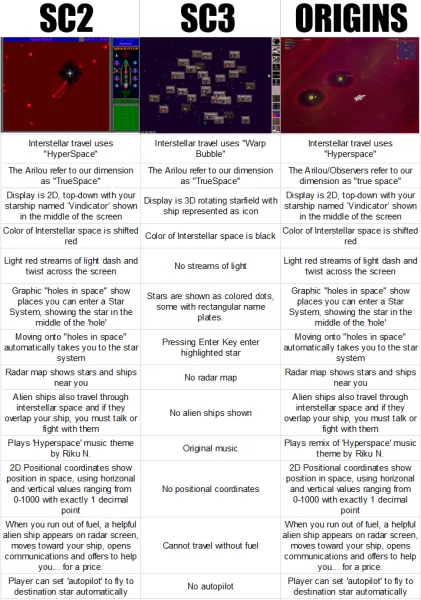 The pair then broke down how Origins is "substantially similar to and/or derivative of our copyrighted game, Star Control II" using a chart comparing concepts, and gameplay elements from Star Control 2, 3, and Origins.