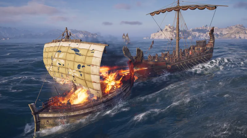 The flamethrower you earn for your ship makes a little more sense in the context of the story. The antagonist is an admiral named The Tempest who is pursing this dangerous weapon for the enemy fleet. Of course, you can get it for yourself, and it is a powerful asset during naval combat, doing damage and setting enemy ships alight. On the other hand, I wouldn’t put naval combat high on the list of things I enjoy about Odyssey, so this upgrade is also underwhelming (and only useful in encounters that I prefer to avoid).