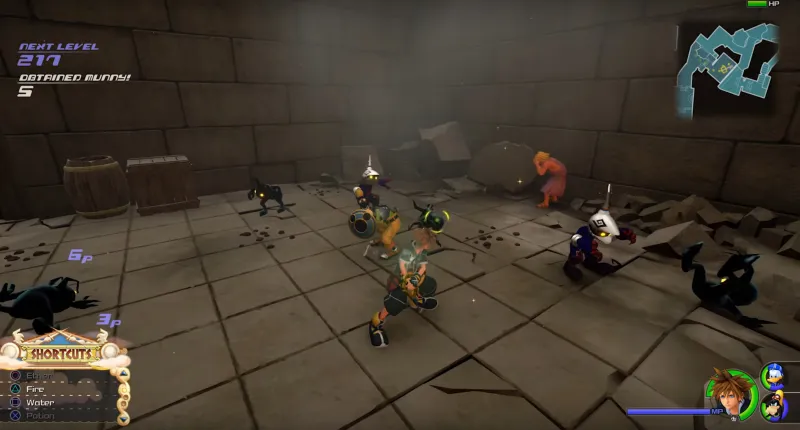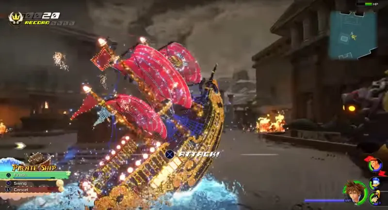 Hades does something evil immediately after I say this. Sora, Donald, and Goofy are sent flying into the distance by some creatures or a spell or something.