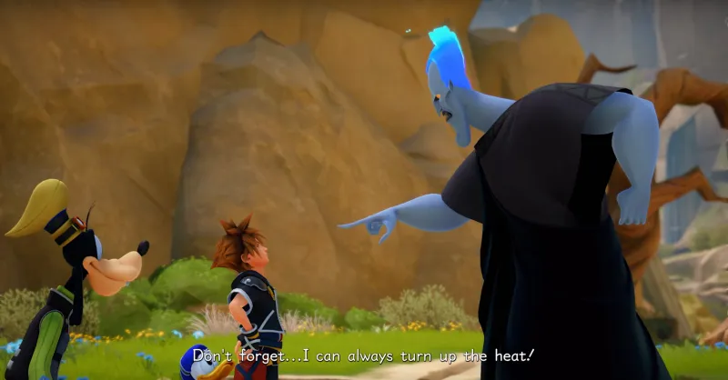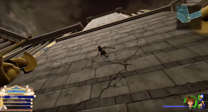 One of Kingdom Hearts III's early action sequences seems incomplete. Sora, Goofy, and Donald are joined by Hercules in a rescue effort to save a little girl who is trapped on a cliff surrounded by fire. Time is of the essence in saving her. Thinking on his feet, Hercules asks the trio to climb onto the back of a statue that had fallen over. The statue just happens to be of Hercules. As odd as it is to see Hercules pick up a giant statue of himself, what happens next is largely left up to the viewer's imagination. It broke my daughter's mind.