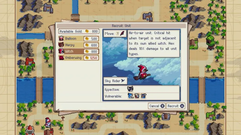In Advance Wars, anti-air vehicles and fighter jets were situational, since they were mostly meant to rule the skies (though AA guns could mow down infantry units with ease). If you ignored those units in Advance Wars, don’t sleep on their equivalents in Wargroove.