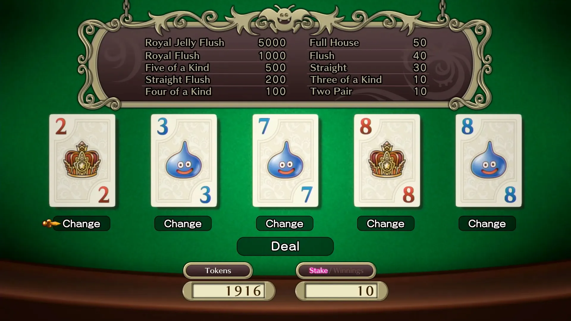 Dragon Quest XI infuses charm and character into every scene and it always feels full of life. But it seemed like a real challenge to do the same thing for its in-game casinos. While you’re still just pulling a lever and hoping for the best, in Dragon Quest XI the machines have more variety in the rules and the animations so it felt like they had tried to make the casinos fun. The basic slot machines have a generous progression system wherein landing certain sets will upgrade the board to pay out more for a limited number of spins. There is an even snazzier machine that plays out a mini-RPG adventure on a screen above the wheel, and how well you do dictates how successful your party is on their journey – the farther they get, the better your reward. You are required to play in the casino briefly during the story, but thankfully you are bombarded with jackpots. Although when you win big on your first trip, the prizes are outrageously expensive and literal crap.