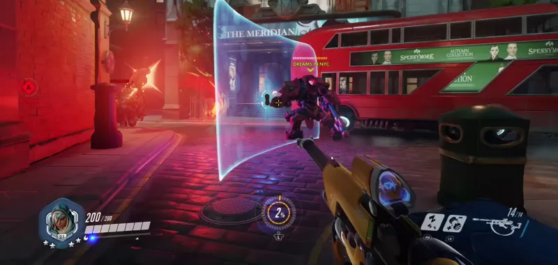 Storefront lights illuminate wet cobblestone streets. All is quiet, save the whooshes of hover-cars cruising some distant freeway. You are Ana. Your partner is Reinhardt. From the balcony of a ritzy hotel, you watch as your significant other lays waste to the enemy team. The smoke clears and Reinhardt, doused in moonbeams, waltzes in the city plaza.