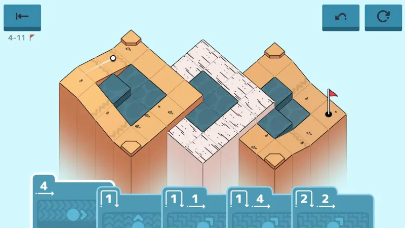 This title is more of a puzzle title than a simulation of the sport. You use different types of pre-selected movement cards in the appropriate order to guide your ball into the hole. For instance, do you chip it up and to the left three spaces first, or roll it down to the lower plane instead? Your ball bounces and rolls depending on the topography, so it's fun to figure out how to orchestrate your moves.