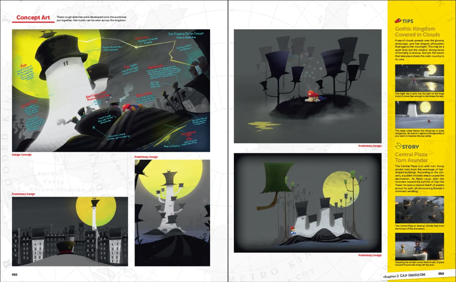 The Art of Super Mario Odyssey is a 368-page hardcover book filled with concept art, sketches, designs, and marketing material from Nintendo during the game's development.