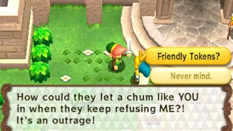 The Faux Hero, like Linkle from Hyrule Warriors, believes himself to be the hero of Hyrule and the protagonist of the game. He has the right clothes, his own sword, and the right attitude for the job, but is denied based on appearance alone. He even begs you to help let him in, but you can’t do anything. He is understandably upset by his refusal, but still administers Friendly Tokens to the hero along the way. This wanton discrimination seems sillier than anything, but a deeper look into this issue brings a larger problem with the Hyrulian government to light.