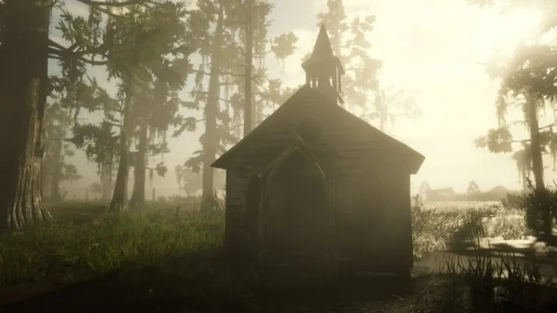 An abandoned, mossy church can be found in the bayou; complete with little pews and a tiny crucifix, this church was clearly used at one point. However, given the size of the church, one has to wonder: used by whom? Who built this tiny church, and who worshiped here? Why was it abandoned? It is clearly a holy place, because players hogtied the vampire, laid it at the altar in this church, and the vampire instantly died. There are many unanswered questions tied to the tiny church, and the community doesn’t even know where to start.