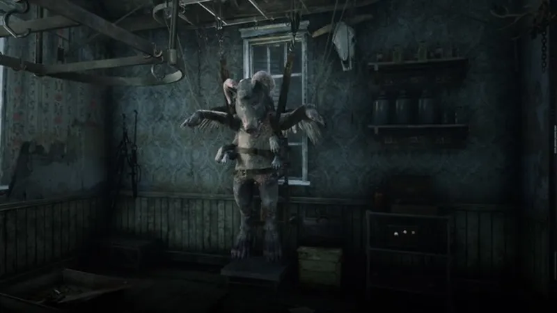 A twisted scientist who considers himself a Frankenstein left a little gift for the curious players. If you climb through an upper window in a house near Van Horn, you can find an abomination of science that is also, likely, a South Park reference. The ManBearPig (featured in several South Park episodes including one involving Red Dead Redemption 2) is a creature assembled with the parts of many animals, with a bunch of arms, a hog’s head, and the heart of a bear. The creature is not alive, thank goodness, but is still quite troubling. The real mystery, however, doesn’t involve the creature, but rather its creator. The creator’s identity is still a mystery, as is the reason he seemingly abandoned his project.