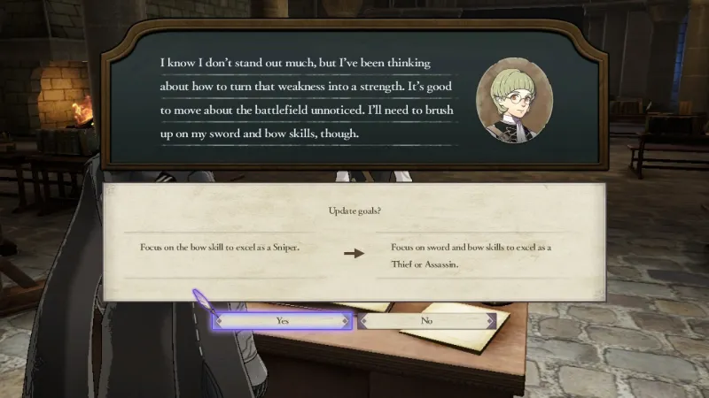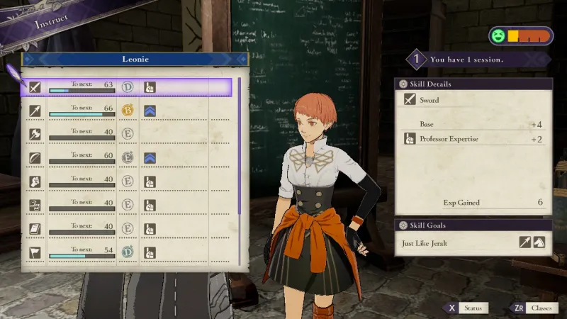 Fire Emblem succinctly capture this part of the teaching experience by occasionally giving you conversations with your students relating to the skill classes they're pursuing. For example, Ignatz might be on the path to become a sniper since you're instructing him on archery. He might come to you and ask if he should focus on studying swordplay in order to become an assassin or thief instead. It's a nice, simple mechanic that fits stats-raising and class-building in the context of teaching in a surprisingly accurate fashion.