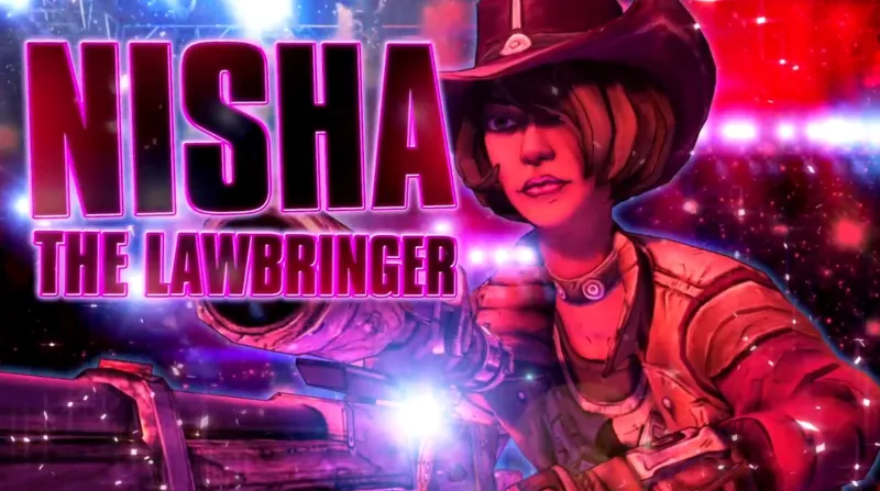• Nisha is the Lawbringer, a sharpshooter who kills simply because it’s fun. She also went on to be a boss in Borderlands 2 as the Sheriff of Lynchwood.
