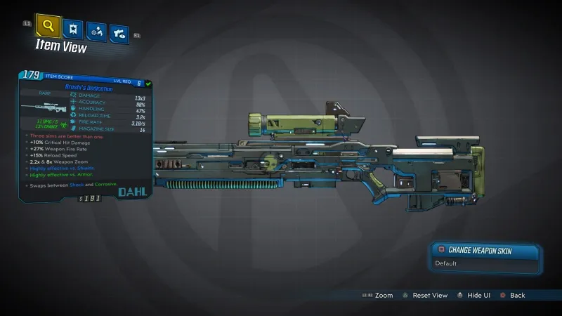 After finishing the main mission, Cult Following, in the Holy Broadcast Center, I have found another treat. Finishing the side quest Head Case (activated by grabbing the head in the jar found when leaving the center) unlocks one of the game’s best early guns: Brashi’s Dedication. A gun enthusiast’s dream it combines four different shooting styles into two modes. The first is an electric mid-range rifle (think the M14 in Call of Duty) while the second is a corrosive long-range sniper. The versatility of being able to fluidly alter tactics without changing weapons is already delicious, but the varying elemental effects make this a tactical must. I will not be dropping it anytime soon.