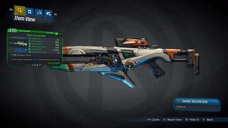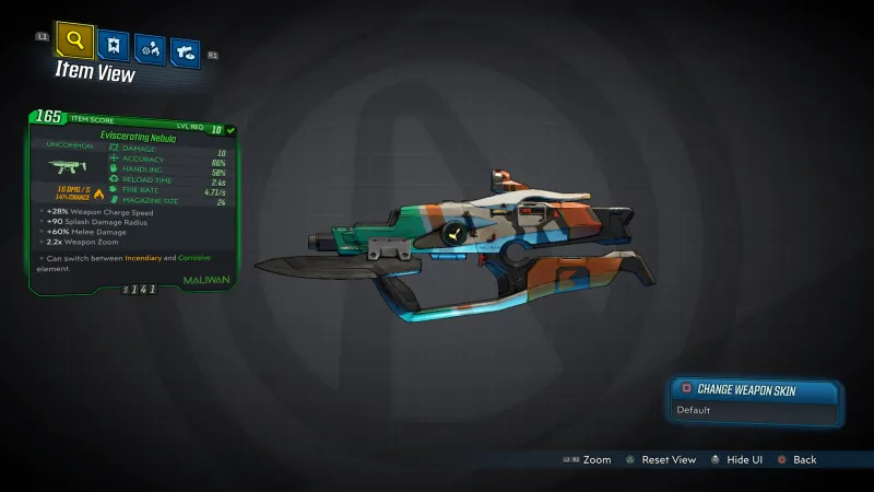 Now I’m starting to wonder ... is Maliwan just overpowered? About 30 min after finding the nebula, I find a Maliwan sniper that humiliates Brashi’s Dedication. This monstrosity does 34 elemental damage (incendiary and shock) and boasts a 30 percent chance for elemental activation. That’s triple the elemental power of Brashi’s Dedication. The gun nearly one-shots shielded enemies, so it holds a special place in my heart, but something tells me I’ll be finding something sexier soon.