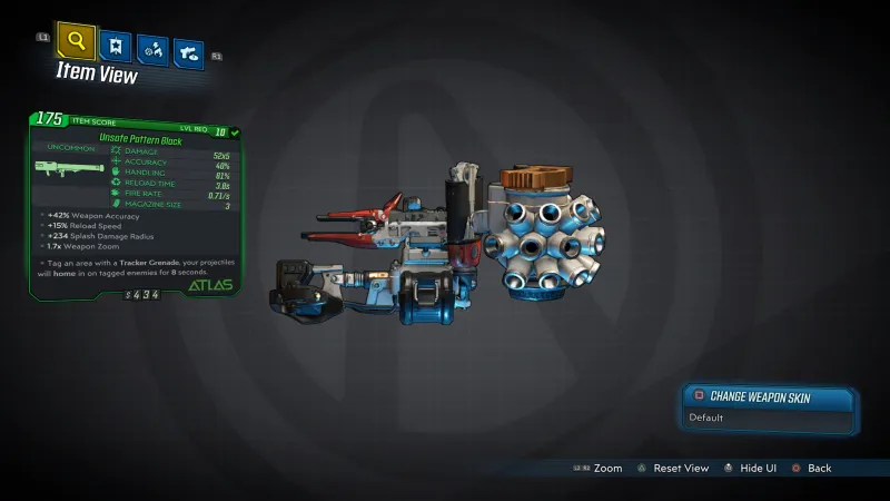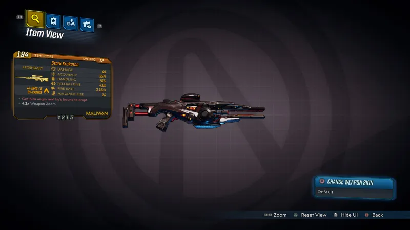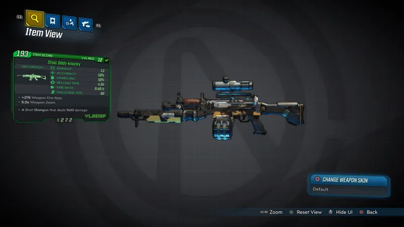 Ooooh, what a beauty. Despite the baffling name and lack of elemental damage, this gun is as awesome to use as it is to look at. It combines the range, impact, and aesthetic of an AK-47 with the magazine size and fire-rate of a heavy machine gun. No matter the range, this gun has me covered. The under-barrel shotgun is just icing on the cake, knocking down any enemies spry enough to get close. The Stoic Oddy-Knocky shreds supine enemies to pieces. Yeah, it’s my new main.