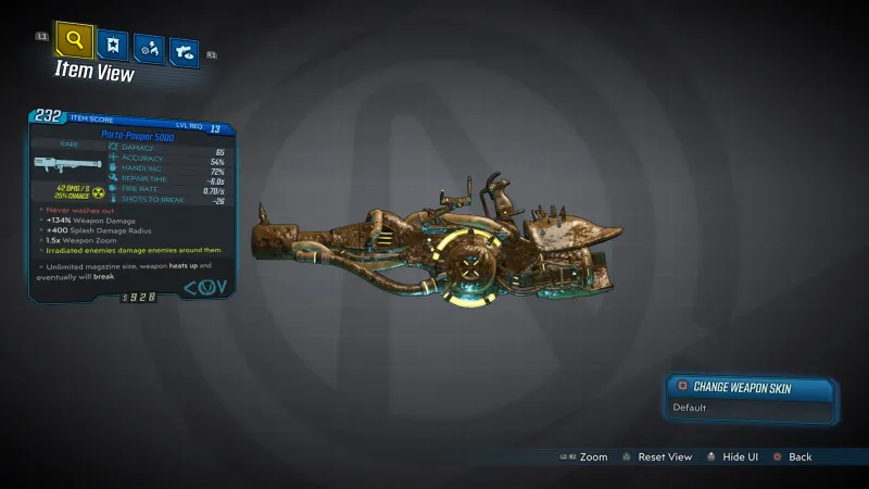 Now, this is a weird one. Awarded after completing the Dynasty Diner side quest, this burger bazooka barfs out rotten roach meat – drenching enemies in rancid rain. Like a fizzling fart, armored enemies evaporate into nothingness.