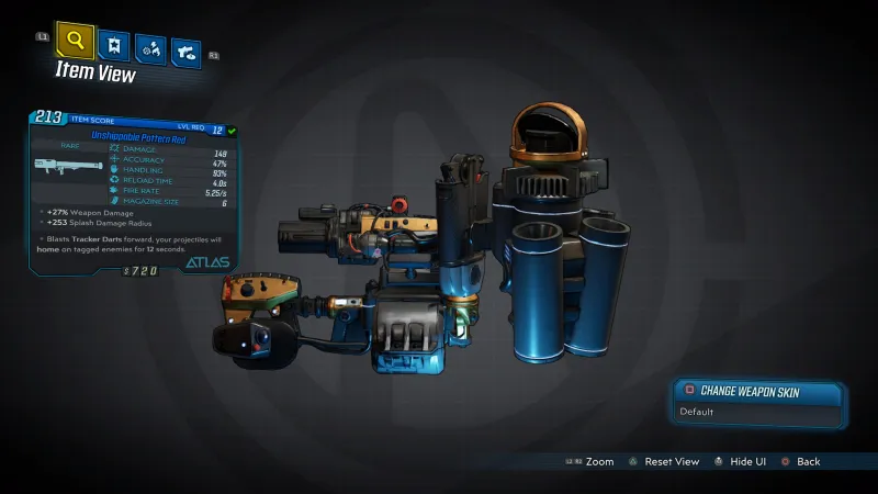 Finally, I’ve found a genuine rocket launcher, and what a beefcake! While the gun has the homemade feel of a high school science project, it packs the wallop of a military-grade armament. Replete with trackers, this launcher’s missiles quickly home in on targets. Furthermore, the trackers come in the form of grenades; if they explode in the enemy’s vicinity, the missiles cannot miss. It’s assured destruction, without the mutual part.