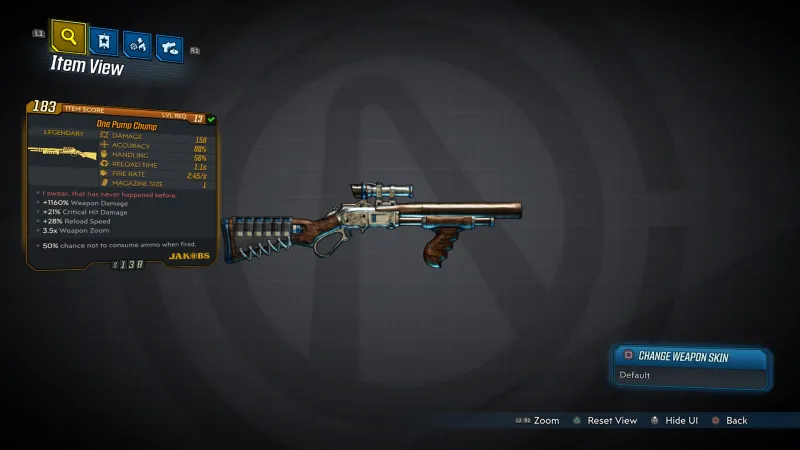 True to the Jackob’s steam punk spirit this assault rifle boasts a classic, Victorian aesthetic. Part Gatling gun, part tommy gun, it captures the unrelenting power of the former while retaining the mobility of the latter. Ripping through health and shields with equal efficiency, it’s fantastic in most situations. Combine excellent accuracy and fire rate with a potent ricochet ability (all critical hits bounce to next closet enemy) and you have an assault rifle that decimates groups about as effectively as it does individuals.