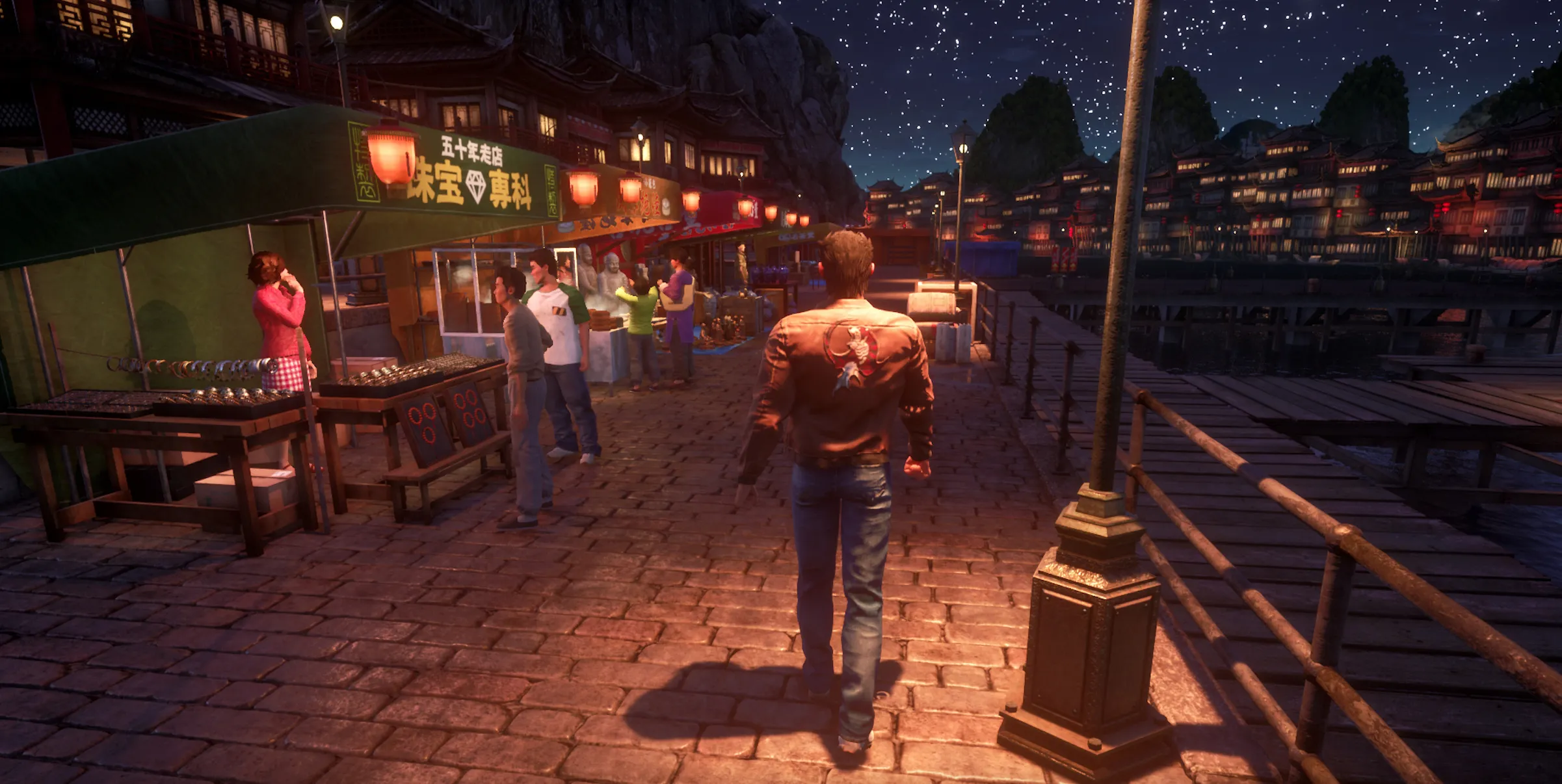 As with the previous Shenmue games, players can unravel this main mystery at their own pace, and there are plenty of activities to distract them while they’re at it. The town of Guilin is dense with over 140 shops, arcades, hotels, and temples. Players can spend days gambling on minigames such as the pachinko-esque Lucky Hit, get a part-time job driving a forklift, fish along the riverfront, collect herbs, and hunt for hidden in-game collectibles.