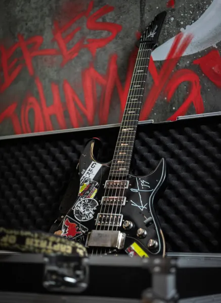 CD Projekt may seem like a newer company given The Witcher's recent rise to fame, but its history dates all the way back to 1994 and some of its earliest employees are still there. To celebrate their time with the company, CD Projekt put together gifts for their significant anniversaries. One of them is a Cyberpunk 2077 Johnny Silverhand guitar signed by actor Keanu Reeves, who plays Johnny in the game, and even put "J.S." beneath his signature.