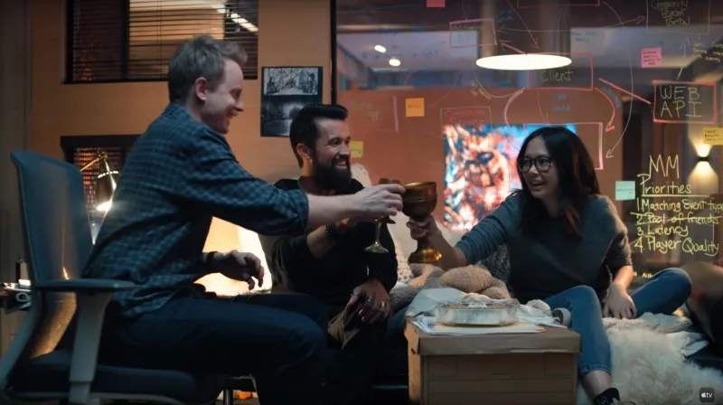 Mythic Quest: Raven’s Banquet is just a day away from its launch on Friday, February 7. The Ubisoft and Apple TV+ sitcom comes from It’s Always Sunny in Philadelphia’s Rob McElhenney, Charlie Day, and Megan Ganz. The comedy tackles the challenges of making games by taking us inside a fictional game development studio and showcasing the issues the characters face in its day-to-day operations. Expect big personalities to clash, as the team desperately tries to keep their successful MMORPG interesting and profitable. Ahead of the show’s debut, we chatted with some of the creators and executive producers (McElhenney, Ganz, and David Hornsby) to see what went into making it.