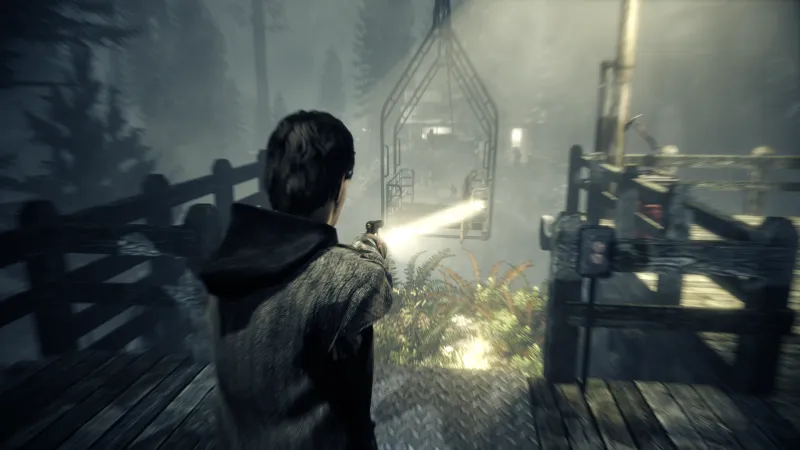 It was very Terry Pratchett inspired, tonally. We decided we were not going in that direction after exploring it for a while. There were other concepts, too. There was a zombie-apocalypse game that was kind of a road trip from East Coast to West Coast. And there was another idea with a small town. Although that concept ended up being different than Alan Wake, the small-town idea was something that remained on the table. So we had day and night, light and dark, a small-town setting, and pieces like that – even if the concept we were working on didn’t feel quite right, some elements of it remained. And then we kind of formed Alan Wake, the Twin Peaks inspiration, the Pacific Northwest small town, and also Alan Wake as a writer.