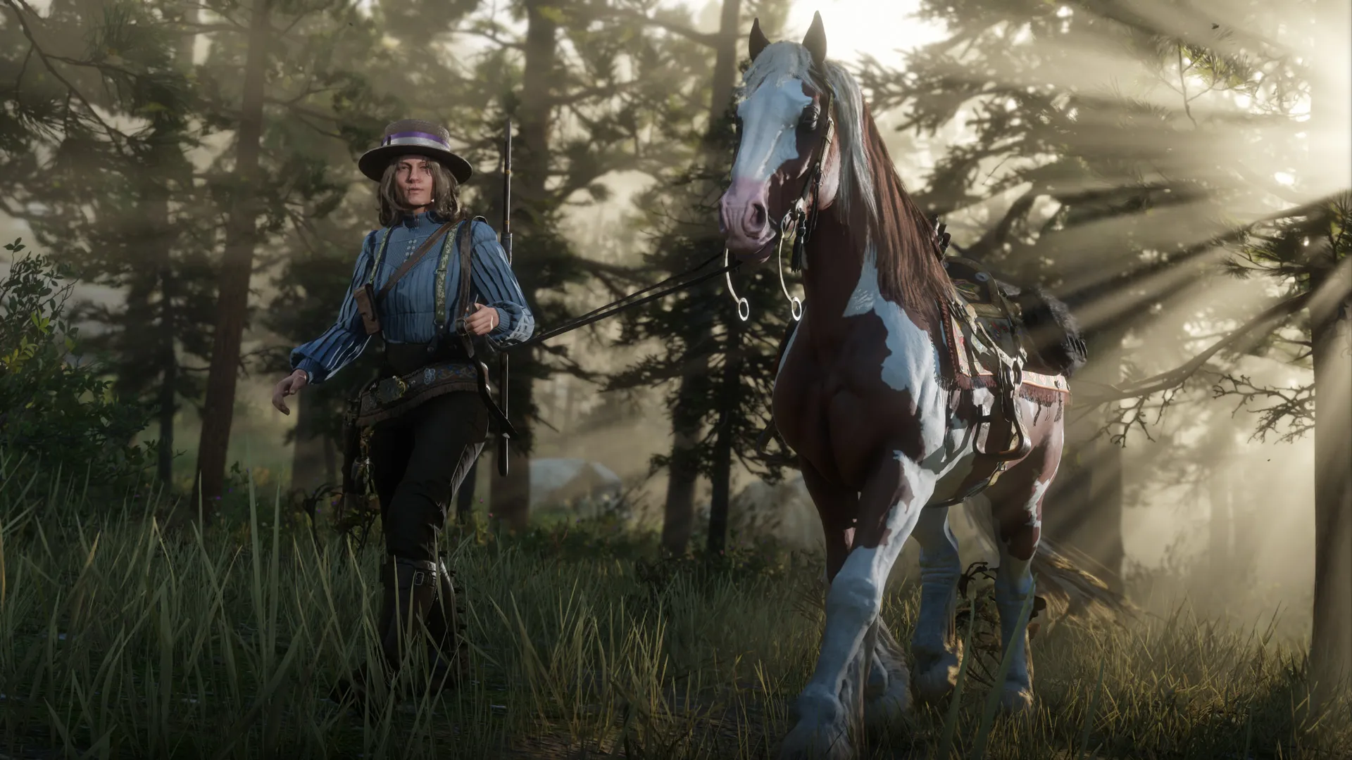 When breaking off of the beaten trail, players may not see foxes, beavers, wolves, elk, cougars, boars, and bison in the wilderness. You'll be tasked by conservationist Harriet Davenport to deliver information on these animals, which can be tracked in a new Animal Field Guide. Each animal has three sub-species and also a Legendary version to encounter. When you're out in the wild, you can use a new Advanced Camera to capture the animals in their habitats, partake in additional animal-based free-roam events (protect them and fight off poachers), and can perform mercy kills should something you are tracking become critically injured. You may nave a tight bond with the horse you have now, but this update gives you a new breed to ride: the Gypsy Cob with six coats to choose from. The Gypsy Cob is equipped with improved saddle and saddle bags.