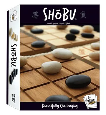 Lovers of abstract strategy games like chess, go, or Othello should pause to consider the intriguing potential of Shobu, an especially striking new two-player game that feels like it’s been unearthed from some long-forgotten treasure hoard. Four small wooden boards each house a set of white and black smooth-tumbled stones. On your turn, move one of your stones one or two spaces in any direction. Then, move any one other stone on one of the boards of the opposite color, where it must shift in the same direction and number of spaces. The goal is to knock all your opponent's stones off of any one board to win.