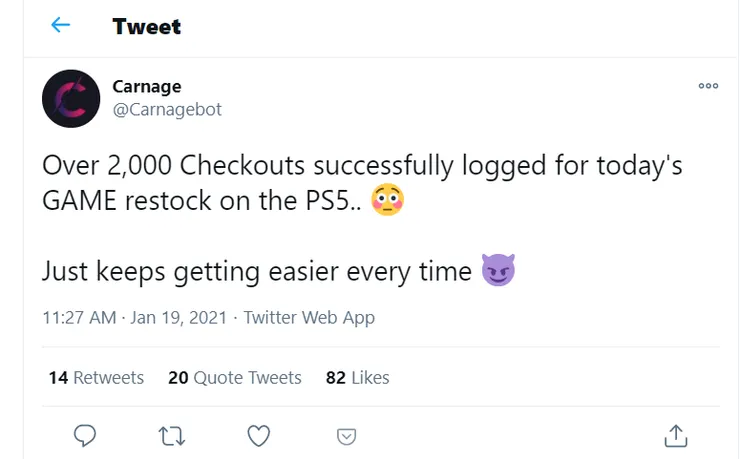 The UK scalping group goes by the name Carnage, and they took to Twitter to brag about securing stock getting "easier every time" as they boast a recent 2,000 system haul. The "easier" comment is uniquely gouache considering many are scrambling to get just one system as groups like these continue making these highly desired consoles incredibly inaccessible on a financial level. Still, it's not unexpected given the very nature of scalping, to begin with, and it's not illegal and many retailers aren't doing enough to prevent it. Unfortunately, this practice will continue to be a reality until the retail process changes on a fundamental level.